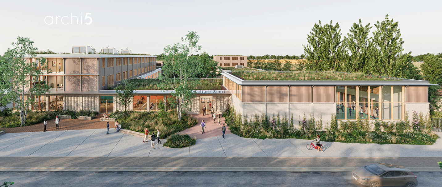 Programme : Locaux Enseignement – Espace de vie associative étudiante – Bureaux – Demi-pension Capacité : 650 élèves + 80 SEGPA / Demi-Pension: 450 élèves + 50 commensaux. HQE bâtiment durable, PassivHaus et Biosourcé